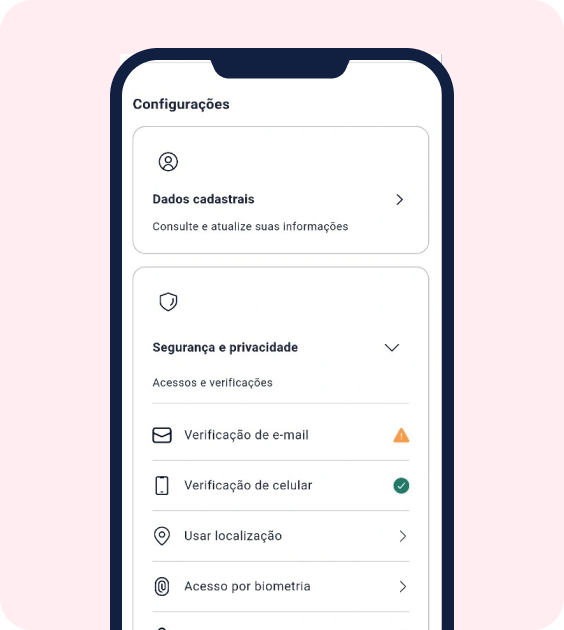 A biometria facial é solicitada sempre que algumas funcionalidades forem acessadas pela primeira vez em um novo dispositivo. Isso significa que, ao trocar de celular, o aplicativo pode pedir uma nova confirmação facial para garantir a segurança.