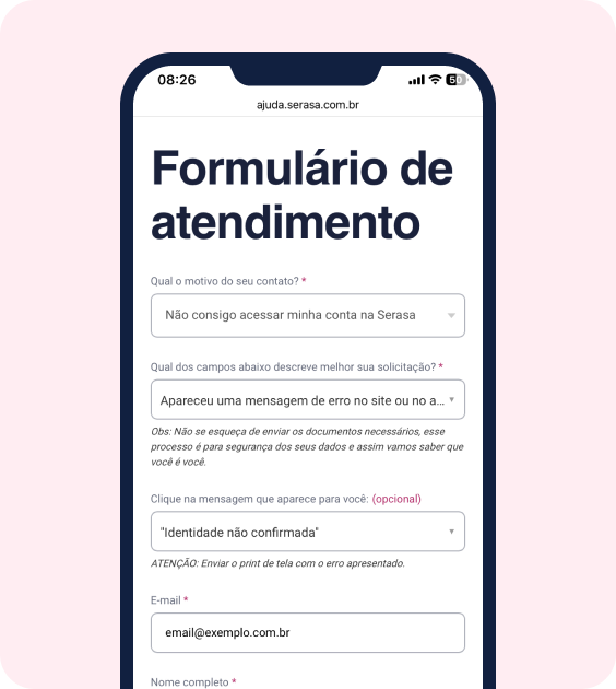 1. Acesse o formulário de atendimento da Serasa.