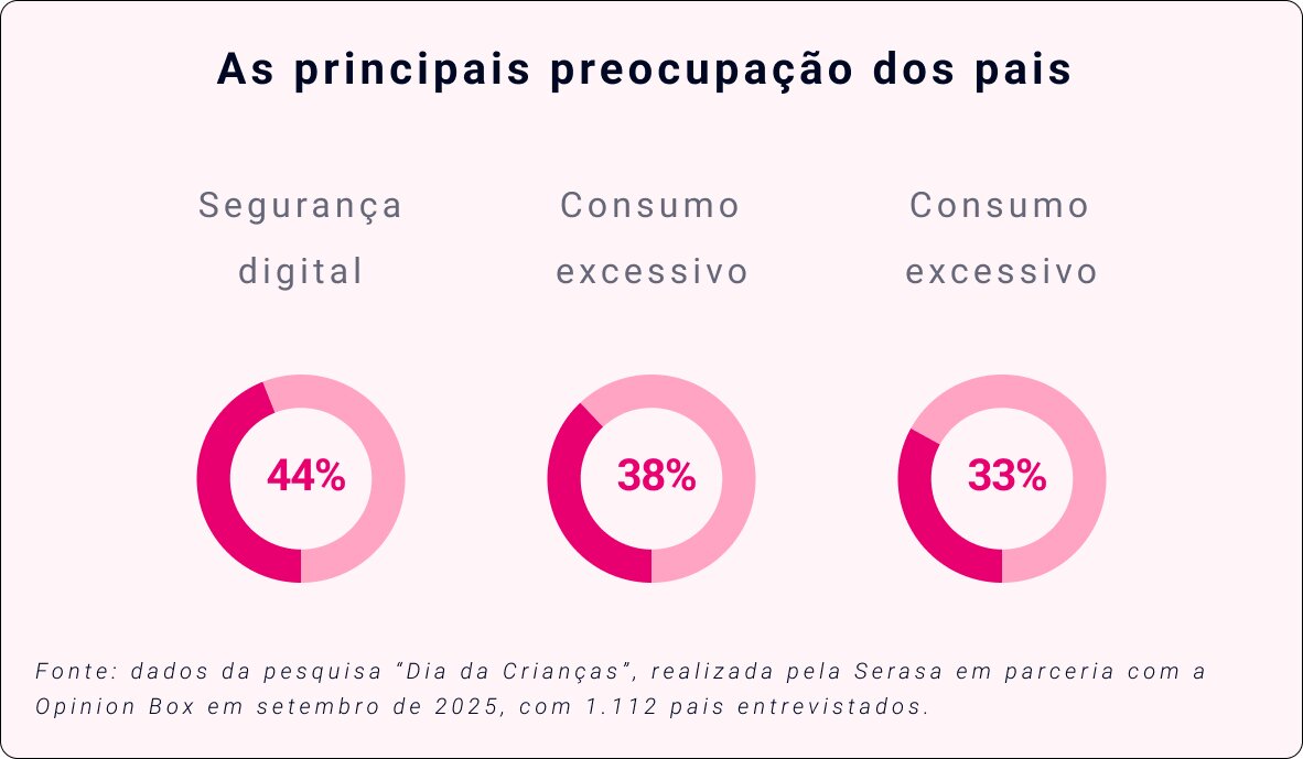 A publicidade e o fácil acesso às redes sociais, definitivamente, não facilitam o trabalho dos pais para evitar o consumo excessivo. Segundo uma pesquisa feita pela Serasa em parceria com a Opinion Box, 65% dos pais acreditam que os filhos são influenciados por redes sociais – e 38% dos pequenos já têm conta própria nas redes.