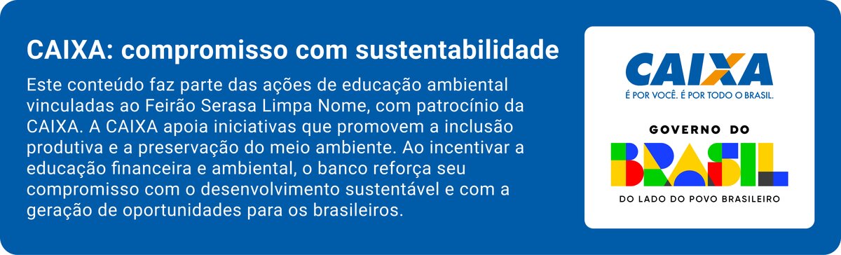 Este conteúdo faz parte das ações de educação ambiental do Feirão Serasa Limpa Nome 2026, com patrocínio da CAIXA.