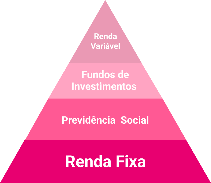 Na pirâmide de investimentos abaixo, os tipos de investimentos estão distribuídos do menor para o maior risco, da base para a ponta: