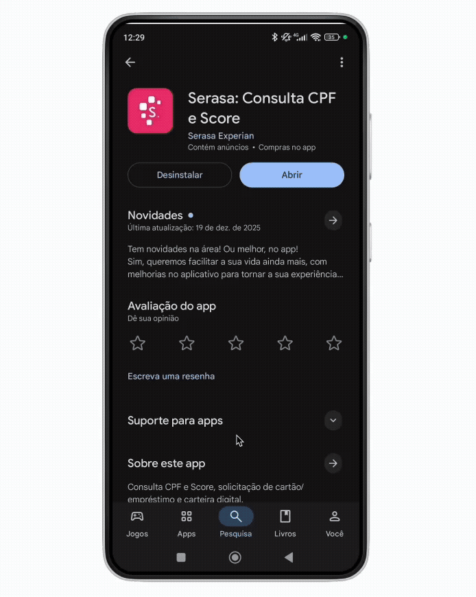 Baixe ou atualize o aplicativo da Serasa no celular.